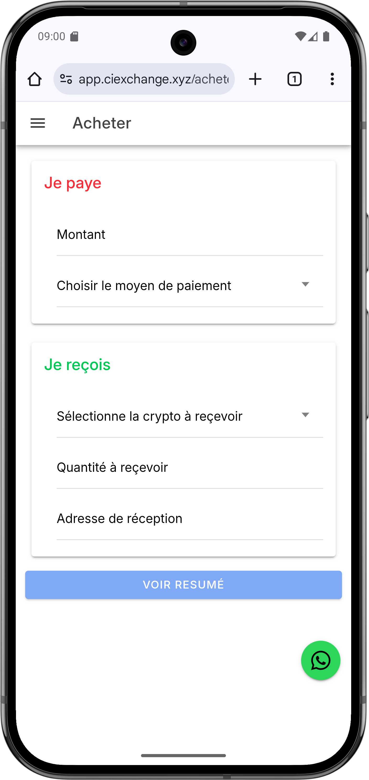Achète & vends tes stablecoins et autres crypto-monnaies instantanément.